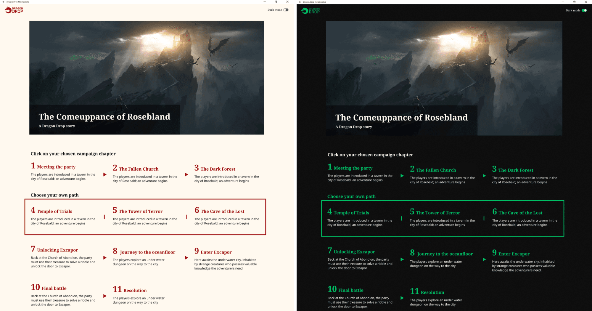I designed the Dragon Drop desktop app, a platform for game masters and indie publishers of tabletop RPGs